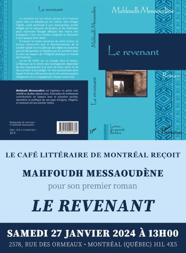 Afin de mieux découvrir cette œuvre romanesque, l’auteur parlera d’autres détails dans un café littéraire prévu pour le 27 janvier prochain au 2578, rue des Ormeaux, à Montréal, à 13 heures.